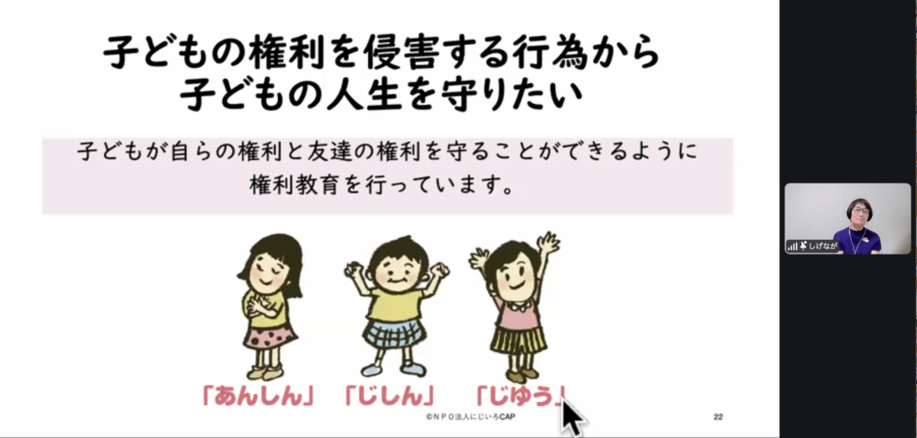 - 子どもの権利のこと、アドボカシーのこと、CAPのこと…と話題を共有できたのが一層よかったです。